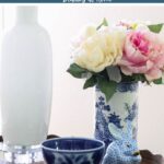I bought my first blue and white chinoiserie vases at AtHome. They were only $39 each. I used one in our spring bedroom and one on a spring tablescape.