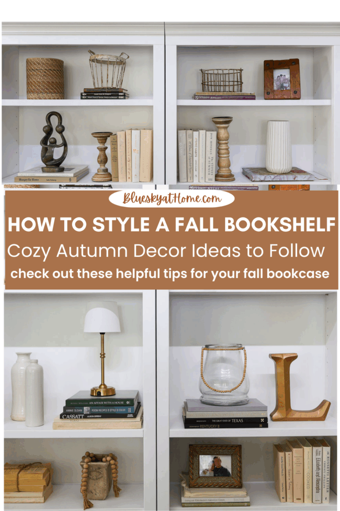 I hope my process will inspire you to change your bookshelf design for a new autumn season. Pin this post to save it for this season and others to come. Here are some Pinterest Boards to check out: Fall Home Decor, Autumn Ideas, Bookcase Design Ideas.